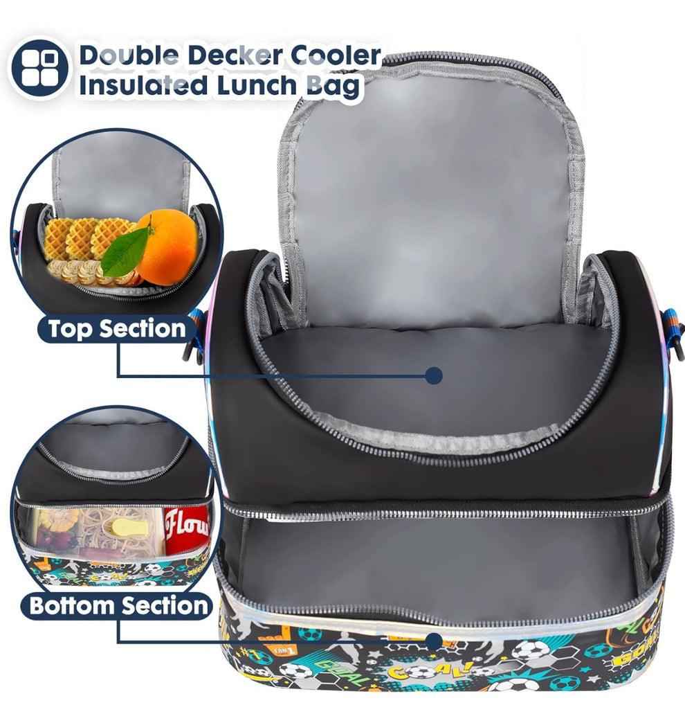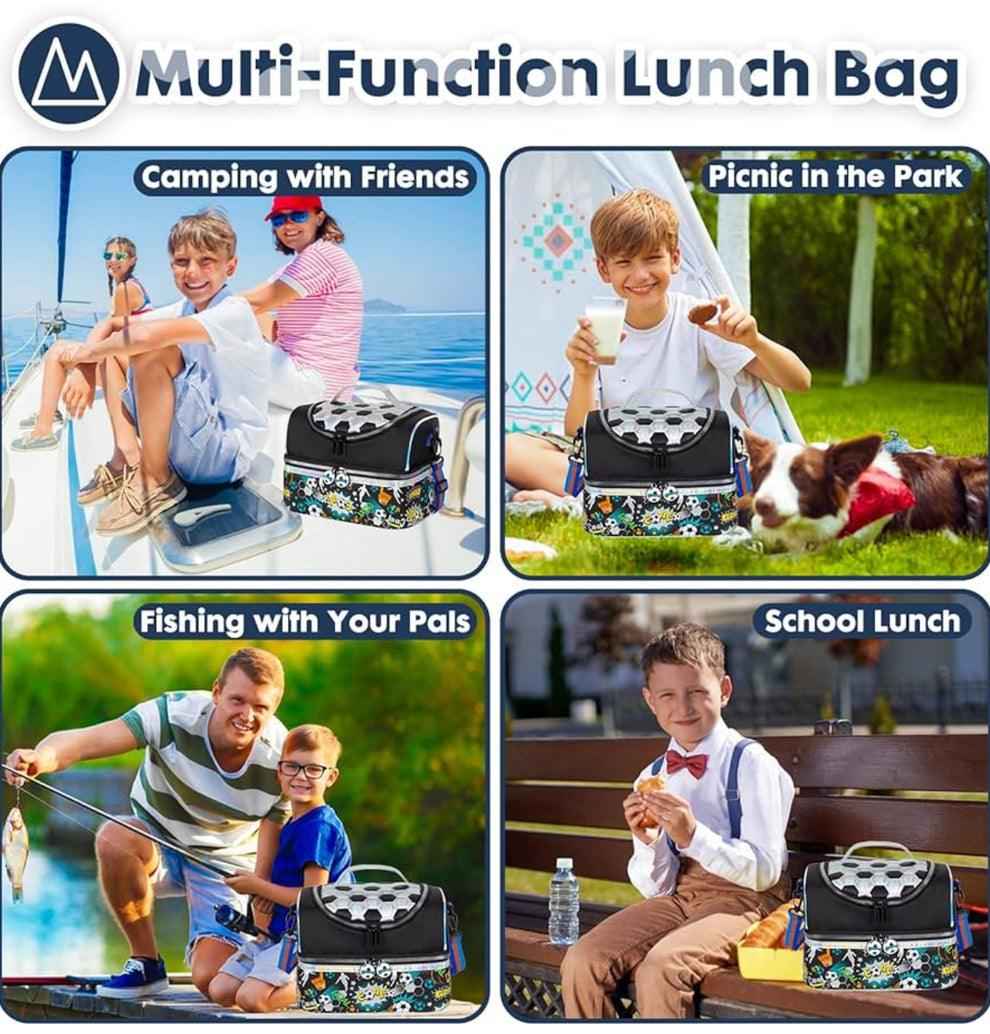 Spacious & Versatile: Measures L: 28 W: 18 H: 18 cm, compatible with most popular kids' lunch boxes. The zippered front pocket offers extra space for condiments and napkins, while interior mesh pockets keep ice packs, forks, spoons, and knives organized.